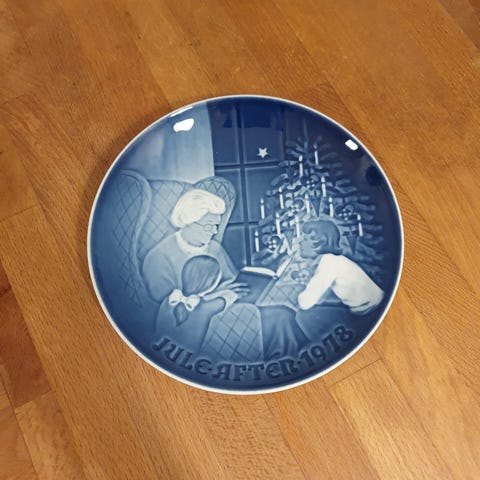 Bing & Grøndahl, juleaften 1975, Jul ved den gamle vandmølle.Dia 18 cm.Flot og velholdt, uden skår, gå til varen, for flere billeder.