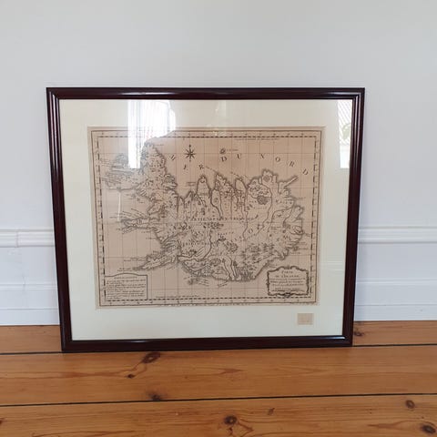 Indrammet islandsk kort, Die Insel Island, Nro 76.H 41 cm, B 44 cm.Flot og velholdt.Sendes ikke, afhentes på Nørrebro.