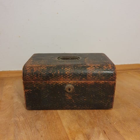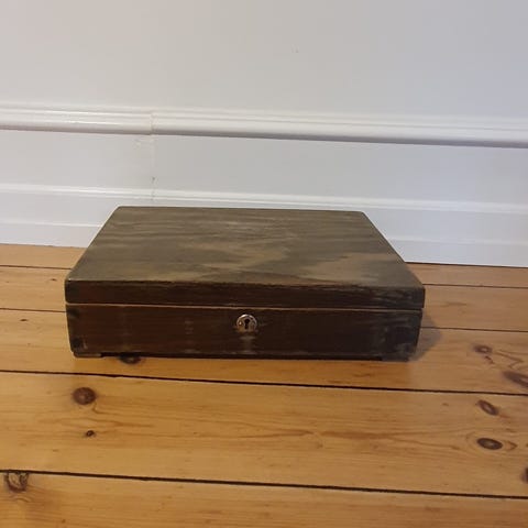 Vintage æske i træ med nøgle