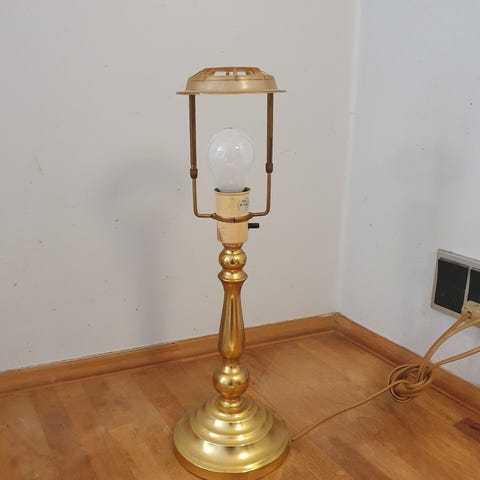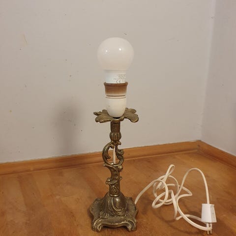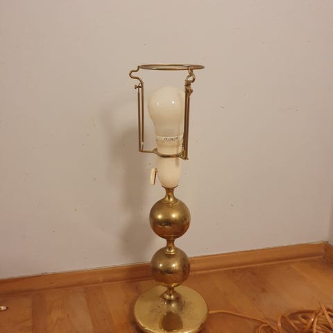 Retro lampe i træ og messing.H 66 cm, B 15 cm.Sendes ikke, afhentes på Nørrebro.