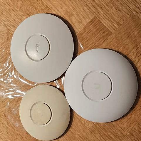 Access point, wireless, Uniquiti, Perfekt, Helt nye og ubrugte beslag til UniFi AC AP pro m.v. De er 16 cm i omkreds. Aldrig brugt. 4 stk med skruer, samt strømforsyning og ledning 4 stk 600. Stk pris pr sæt 200