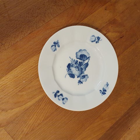 Kagetallerken fra Blå Blomst, Royal Copenhagen.1. sortering.Nr 10/8553.Dia 16 cm.Flotte og velholdte, uden skår eller lignende. Gå til varen, for flere billeder.Har 7 styks på lager, prisen er stykket.