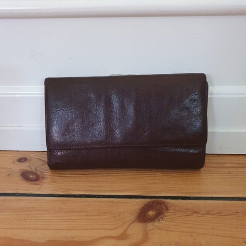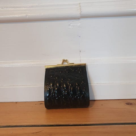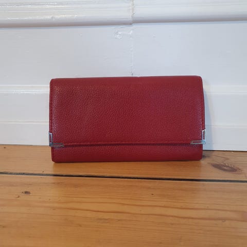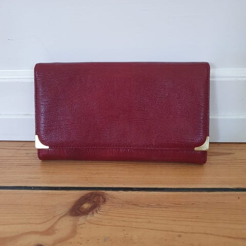 Vintage pung i rødt læder.H 9 cm, B 13 cm.