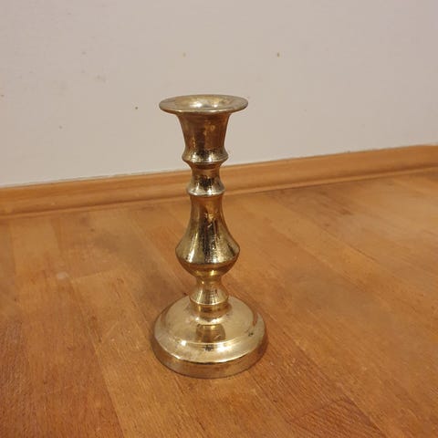 3 styks lysholdere i messing med udsmykninger.L 12 cm.Sælges samlet, gå til varen, for flere billeder.