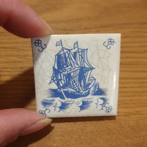 Hollandsk flise i porcelæn.H 4 cm, B 4 cm.Flot og velholdt.