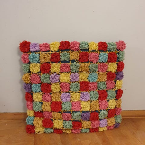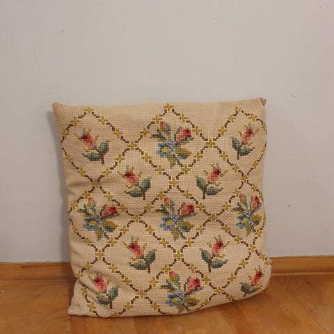 Retro pude med broderet fugle.H 33 cm, B 33 cm.Flot og velholdt.