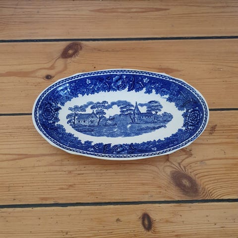 Fad fra Finske Arabia.H 3 cm, L 21,5 cm, D 12,5 cm.Flot og velholdt, uden skår eller revner.