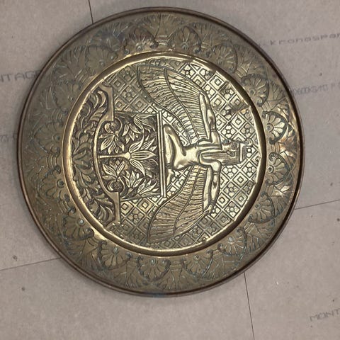 Fad i messing til pynt eller andet. Sten medfølger.H 39 cm, Dia 16 cm.Flot og velholdt.