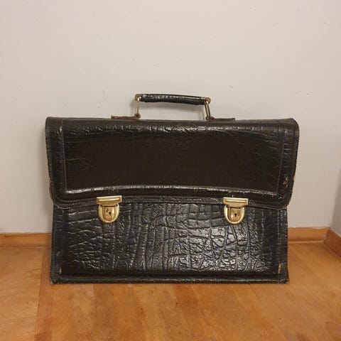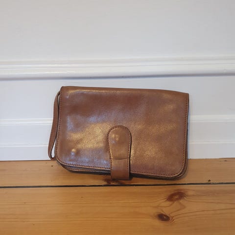 Retro taske med rødt læder.H 28 cm, B 28 cm.Flot og velholdt.