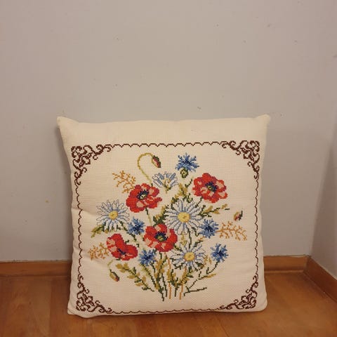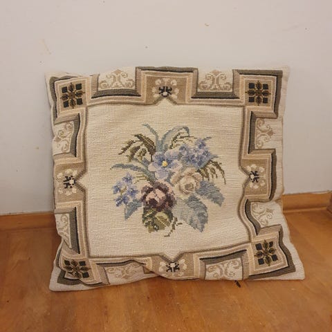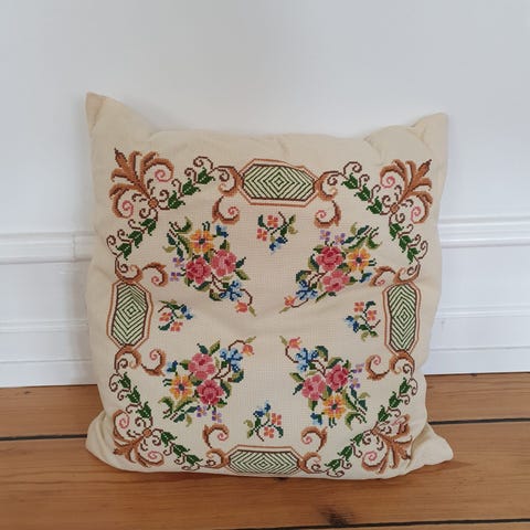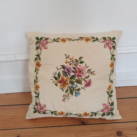 Broderet vintage pude.H 37 cm, B 32 cm.Flot og velholdt.