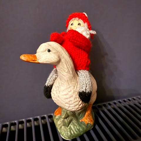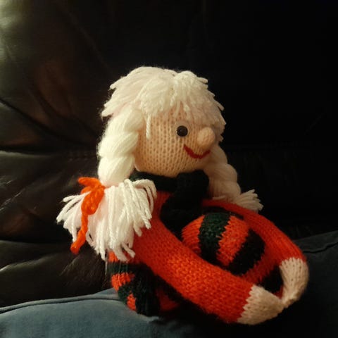Strikkende nissepige.L 46 cm.Flot og velholdt, gå til varen, for flere billeder.