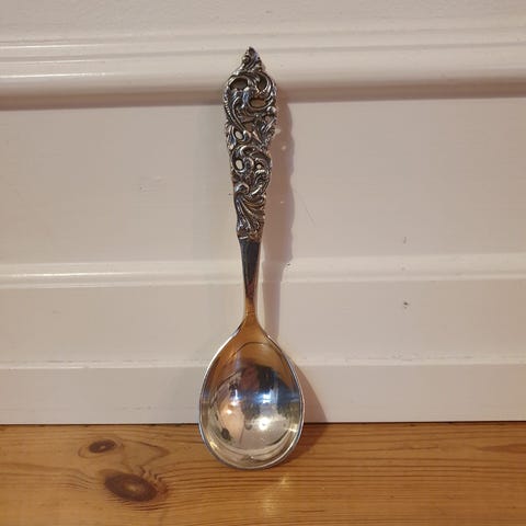 Sølv plet ske, Aalborg.L 10,5 cm.