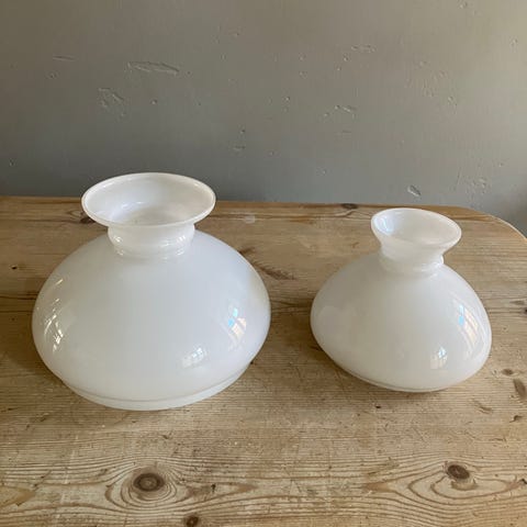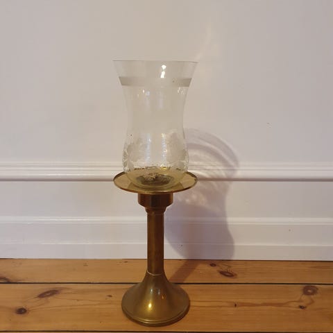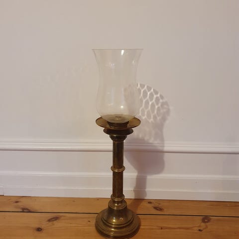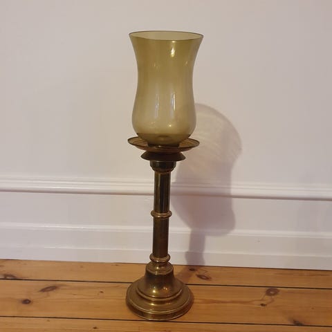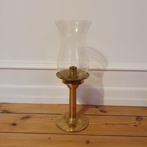 Petroleumslampe i messing med glaskuppel