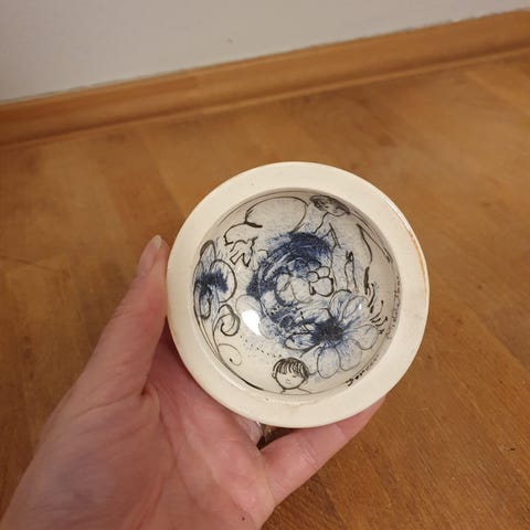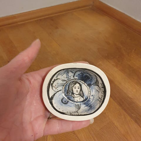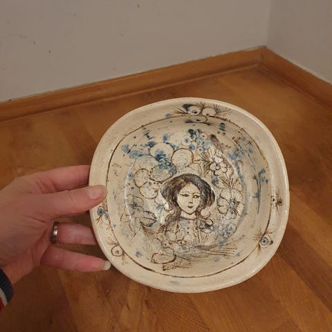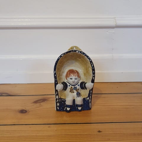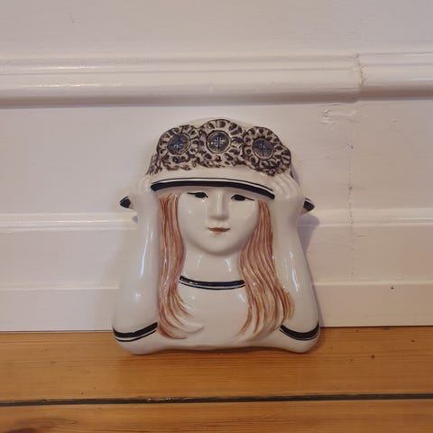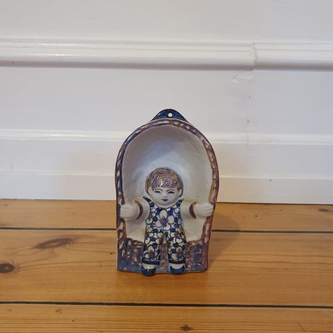 Kvinde og fugle, Doreen Middelboe.H 13 cm, B 12 cm.Uden skår.2. sortering.Nr. 3/6.