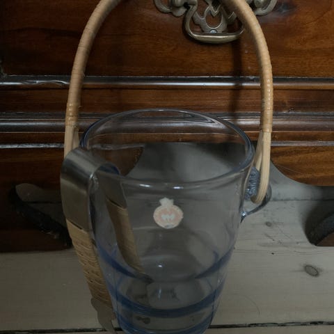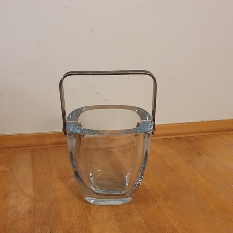 Isterningspand fra Holmegaard i blåt glas.H 16/29 cm, Dia 10,5 cm.Flot og velholdt, uden skår. Gå til varen, for flere billeder.