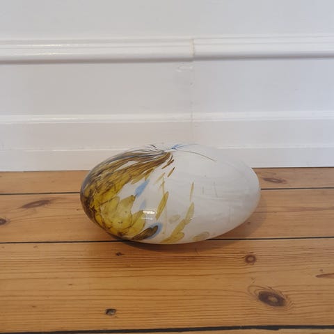 Hulvase i perlemor fra Holmegaard, Per Lütken.H 16,5 cm, Dia 35 cm.Flot og velholdt, uden skår.Sendes ikke, grundet vægten, afhentes på Nørrebro.