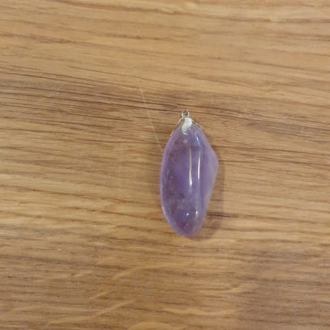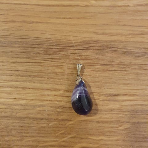 Vedhæng med lilla sten til halskæder eller lignende.L 3,5 cm.Flot og velholdt.(Vedhæng 2).