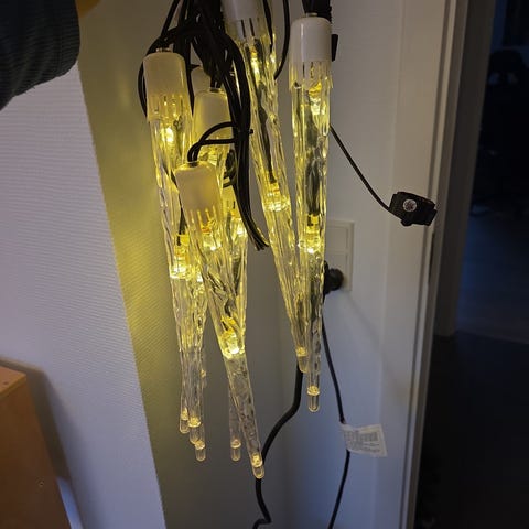 6 styks ens retro istapper i plastik.L 7 cm.Sælges samlet.