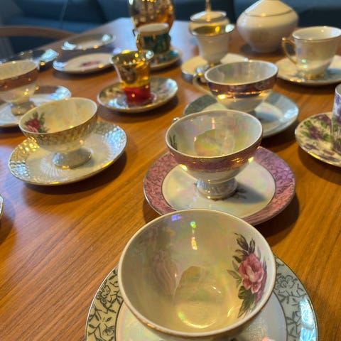Sødt vintage testel med kande og tre kopper.Tekande: H 17 cm, B 18 cm.Kop H 8 cm, B 9 cm, D 6 cm.Den ene kop, har et lille skår i bunden. Gå til varen, for flere billeder.