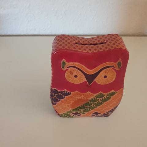 Pung i brun læder med indbygget net.H 11 cm, B 12 cm.