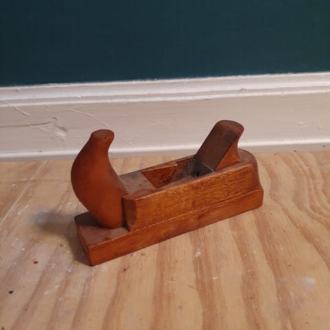 Gammel træhøvl med metal plade.H 12 cm, B 25 cm, D 5 cm.Flot og velholdt.