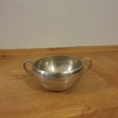 Kande fra Just.Nr 2238.H 19 cm, B 18 cm.Fremstår med brugsspor i bund.
