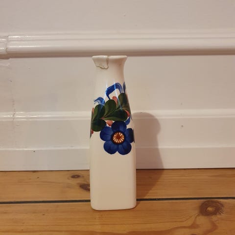 Aluminia vase med skår og tydelige krakeleringer, se billede.H 16 cm.1. sortering.Nr. 512/101.