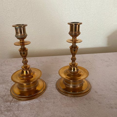 To styks Klokkestager i messing