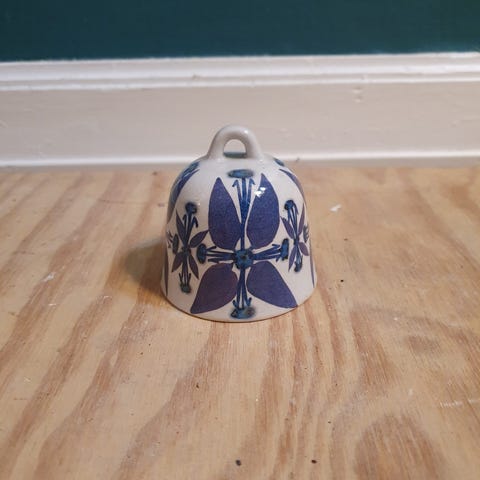Klokke i aluminia.1. sortering.Nr. 516/3269.H 8 cm, Dia 7,5 cm.Uden skår, men med krakeleringer.