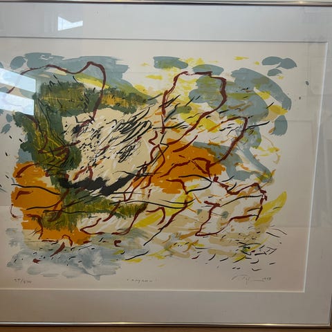 Vibeke Tøjner tryk, Ved stien, august 1995.H 59 cm, B 41 cm.Kan sendes i et paprør.