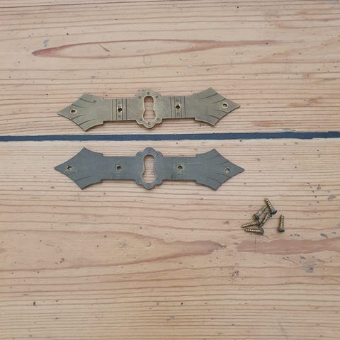 2 x hængsel, skruer medfølger.L 11 cm, B 5 cm.Sælges samlet.Nr 15.