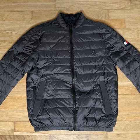 Sort dynejakke fra Tommy Hilfiger.Str XLL 82 cm, B 51 cm.(22)Flot og velholdt uden pletter eller huller. Tøj købes som beset, kan ikke byttes, kan ikke prøves ved afhentning.