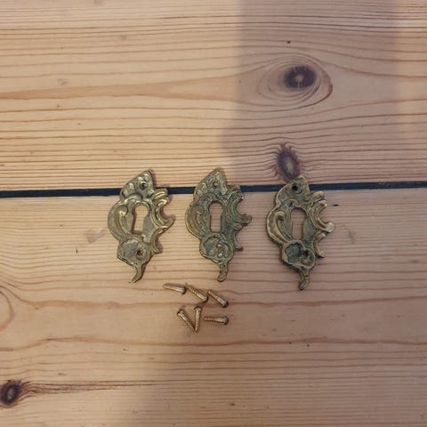 2 styks gamle hængsler i messing, skruer medfølger.L 8,5 cm, B 2,5 cm.Sælges som sæt.(Nr 51).