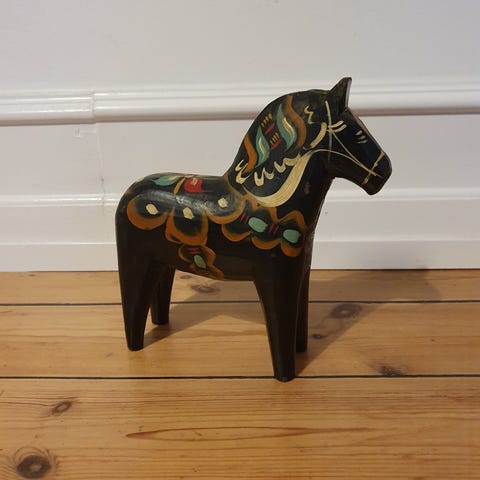Svensk Dalar hest i rød med mønstre.H 18 cm, B 17 cm.Meget flot og velholdt.