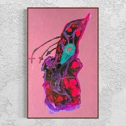 Akrylmaleri, Akryl på lærred sælges med brun massiv egetræ ramme