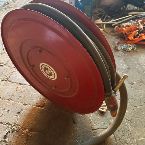 Brandslanget, Slanger som er armeret med kunstfiberspiral og gummiarmeret indvendig, en ekstrem letvægtsslange, indvendig mål er 25 mm., ca. 20 meter pr. Rulle, har sat på en slangevinde i et brandskab, har aldrig været brugt, 200 kr. Pr. Stk., prisen er fast
