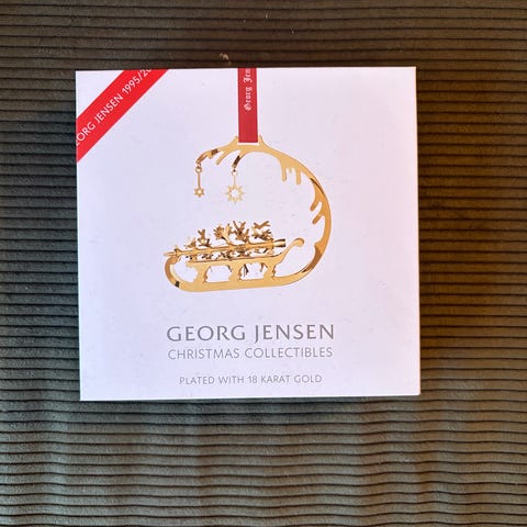 Georg Jensen Christmas Nordic dekoration - lysholder ril juletræet med rød farve i bunden. ornament i sølvfarvet metal. Designet som en del af Georg Jensens julekollektion