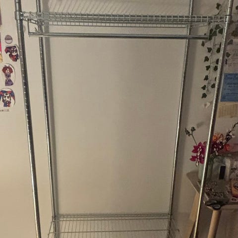 Reol med garderobestang