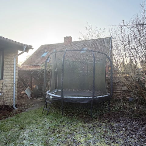 Trampolin med sikkerhedsnet og rutsjebane