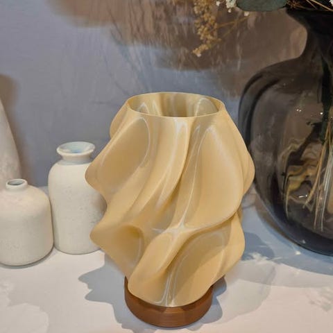 Moderne og elegant lampe i nordisk lameldesign fremstillet med 3D-print i PLA-plast. Lampen har et minimalistisk og moderne udtryk, der passer perfekt ind i både skandinavisk og industrielt interiør.