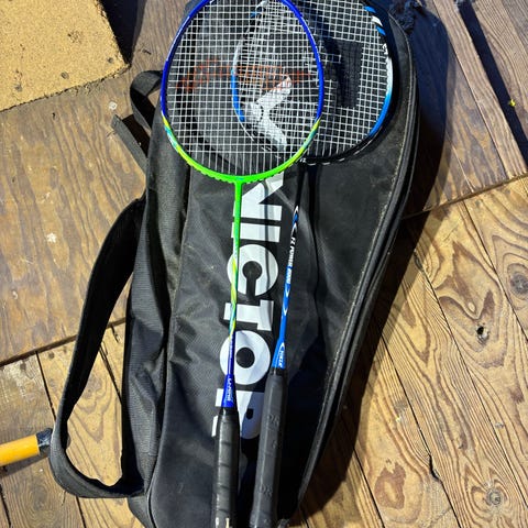 Nye Carlton G600 badmintonketcher sæt inkluderer to ketchere og to bæretasker. Ketcherne har et sort og rødt design og er velegnede til badminton. Sættet er beregnet til generel brug. En ketcher koster normal 654 kr. Sælges begge to med tasker for 500 kr.