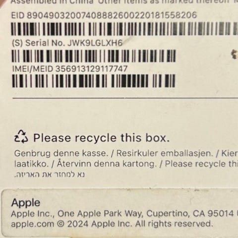 Apple iPhone 16 plus fra november 2024, fejler intet. Kasse medfølger