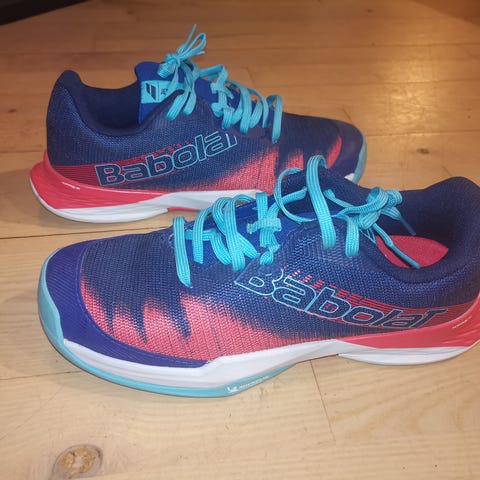 Gør et scoop! 2026-modellen Babolat Propulse Blast tennissko i blå farve. Skoene er designet til tennis med fokus på støtte og stabilitet. De har en slidstærk ydersål, der sikrer godt greb på banen. Materialet er åndbart for komfort under spil. Købt i Spanien. Spillet med dem 5 gange. Ikke min pasform desværre.