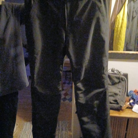 Skibukser der ligner malingplettede jeans. Længde 110 cm med 80 cm indvendig benlængde.