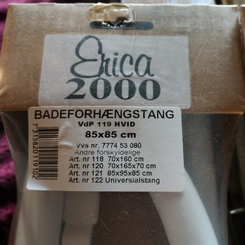 Teleskop badeforhængsstang i messing med 8 tilhørende messingkroge. Brugt en måned, men vi ønsker en anden farve. Købt fra badoghjem til 199 kr.