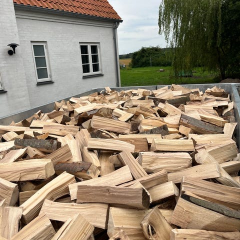 Dansk bøg, fældet forår 2025, savet og kløvet sommer 2025.