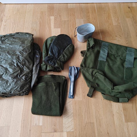 Sælger et komplet sæt originalt, dansk militærudstyr i camouflage. Sættet er i fremragende, næsten ubrugt stand, præcis som vist på billederne. Perfekt til samlere, friluftsfolk eller airsoft-entusiaster.