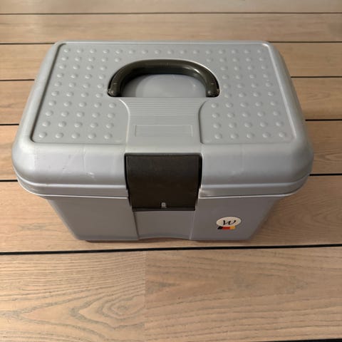 Stor lilla striglekasse fra Horze. Er lavet til at man kan stå og flette på den og bruge den som skammel.