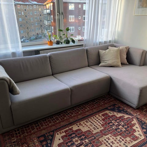 Sælger denne fantastiske og rummelige hjørnesofa med højrevendt chaiselong. Med en bredde på 300 cm og en dyb chaiselong på 200 cm, er der masser af plads til både afslapning og gæster. Det er den perfekte sofa til hjemmet, hvor man både vil kunne ligge helt udstrakt og have plads til mange siddepladser, når man får besøg.