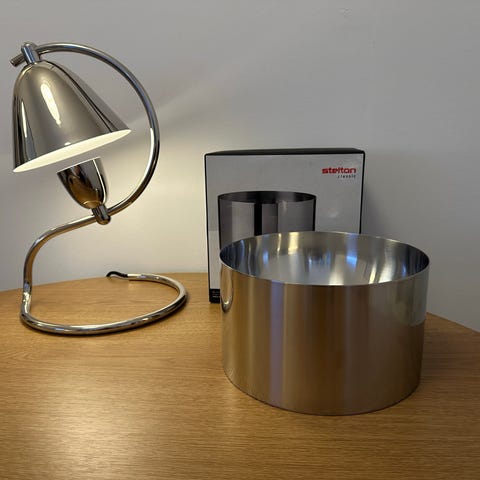 Steltons ikoniske salatskål fra Cylinda-line serien. Designet af Arne Jacobsen. Cylinda-line-serien blev lanceret i 1967, og er kendt for sit minimalistiske, tidløse og funktionelle design, der brød med datidens dekorative traditioner. Udført i rustfrit, satinpoleret stål. Diameter 24 cm. Højde 14 cm. Nogle overfladiske brugsspor indvendigt. Kant og cylinder står utrolig velholdt.